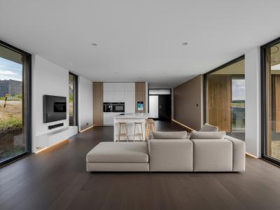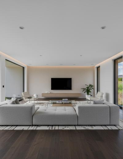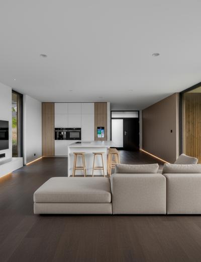 Všetky kľúčové technológie sú prepojené cez inteligentnú elektroinštaláciu Taphome, vďaka ktorej dom automaticky riadi až 70 % denných činností – od svetiel, tienenia, zavlažovania až po zabezpečenie.