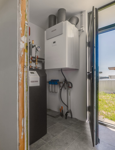| prípojky: elektrina (3F), voda, žumpa, optika, dažďová nádrž