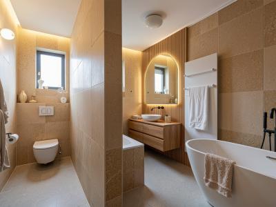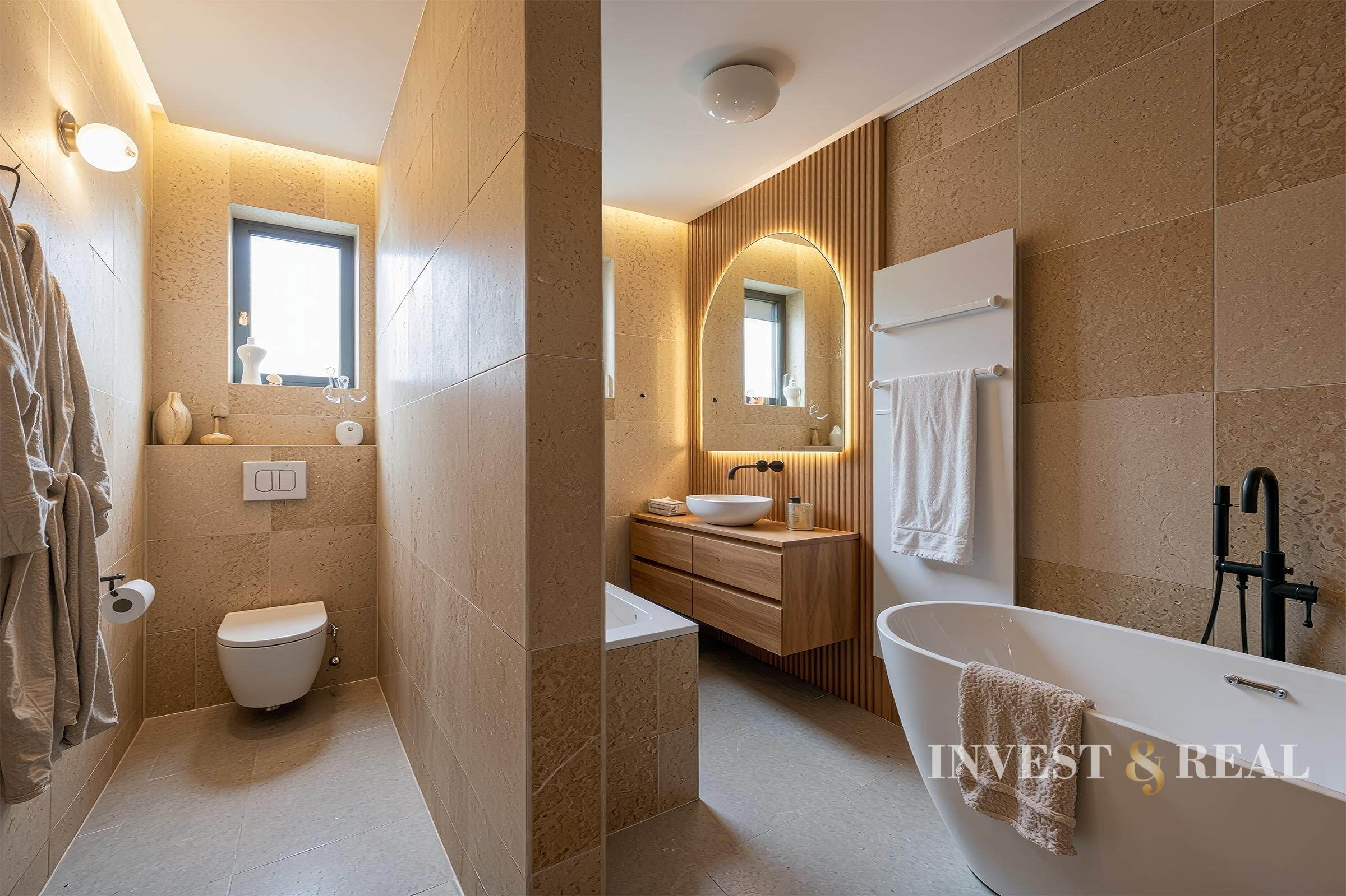 Dom disponuje dvomi nadštandardne veľkými kúpeľňami:
