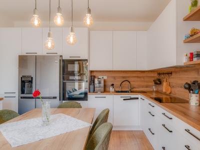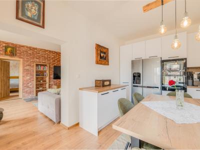 | Prepojená kuchyňa s obývacou halou a výstupom na terasu