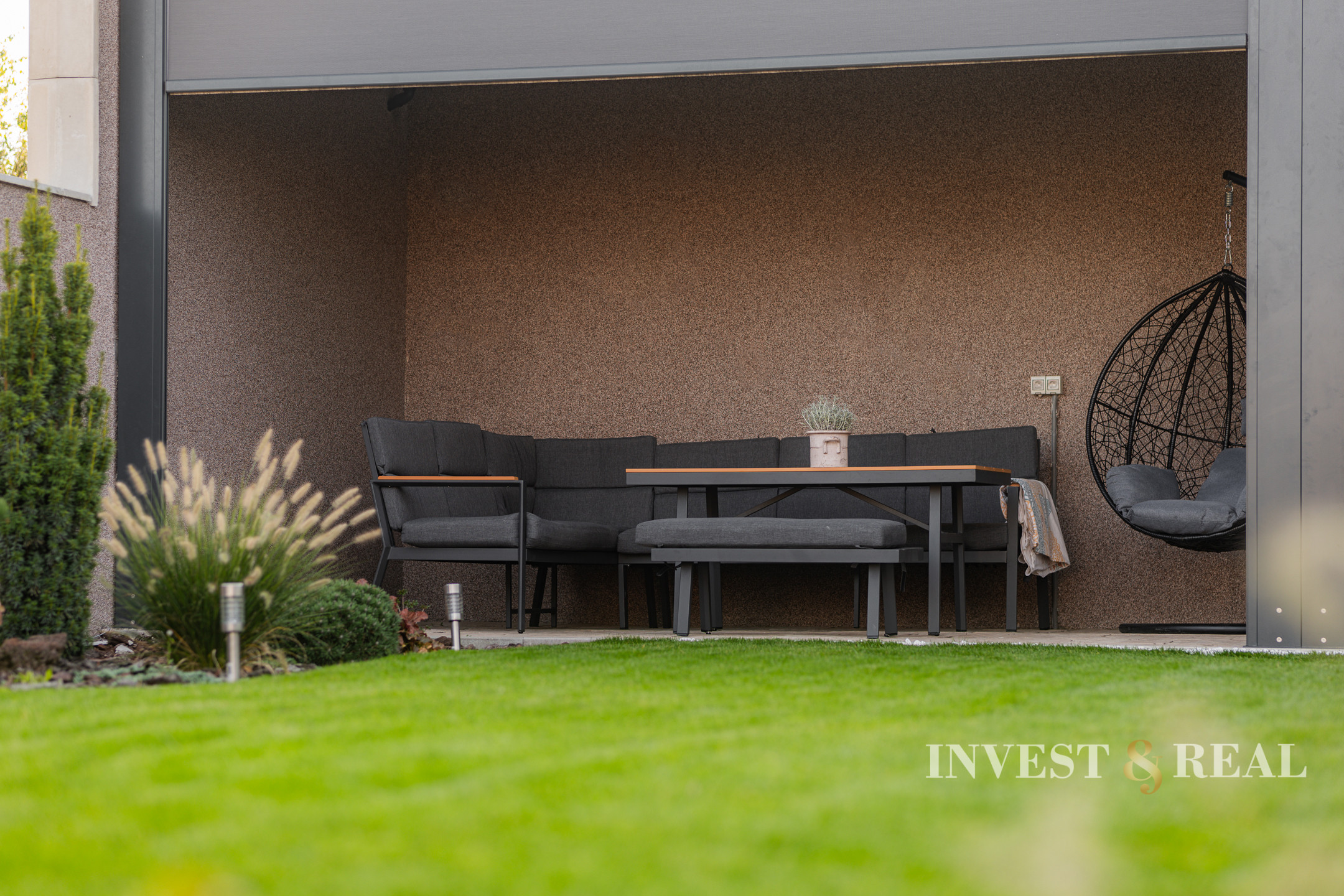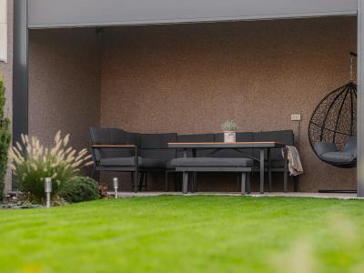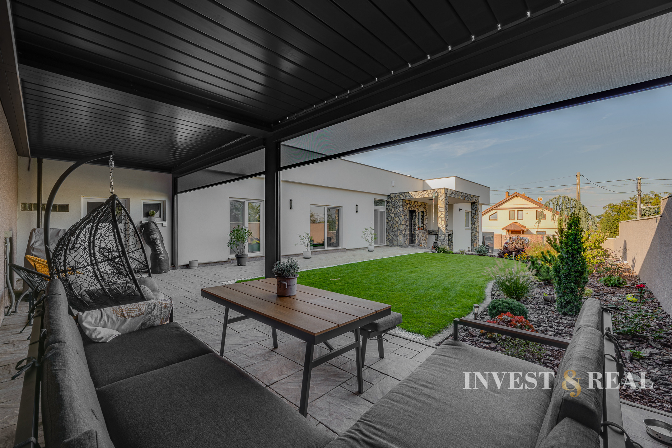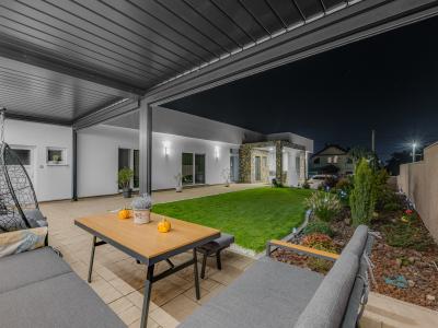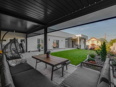 Exteriér disponuje priestrannou pergolou o veľkosti 32 m², ktorá slúži na príjemné posedenie s výhľadom na vlastnú záhradu.