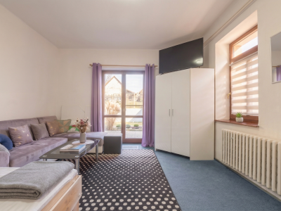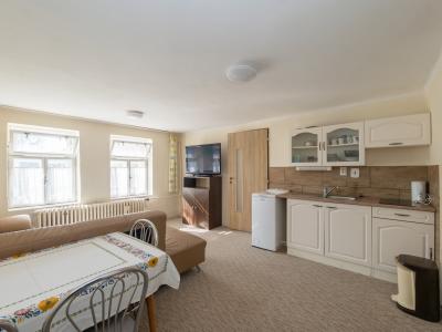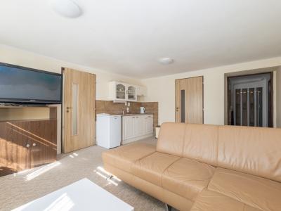 Prízemie tvorí samostatný 1,5 izbový byt s vlastným vstupom, ktorý je pripravený na prenájom, či už formou dlhodobého bývania alebo krátkodobého ubytovania pre turistov smerujúcich do Tatier.