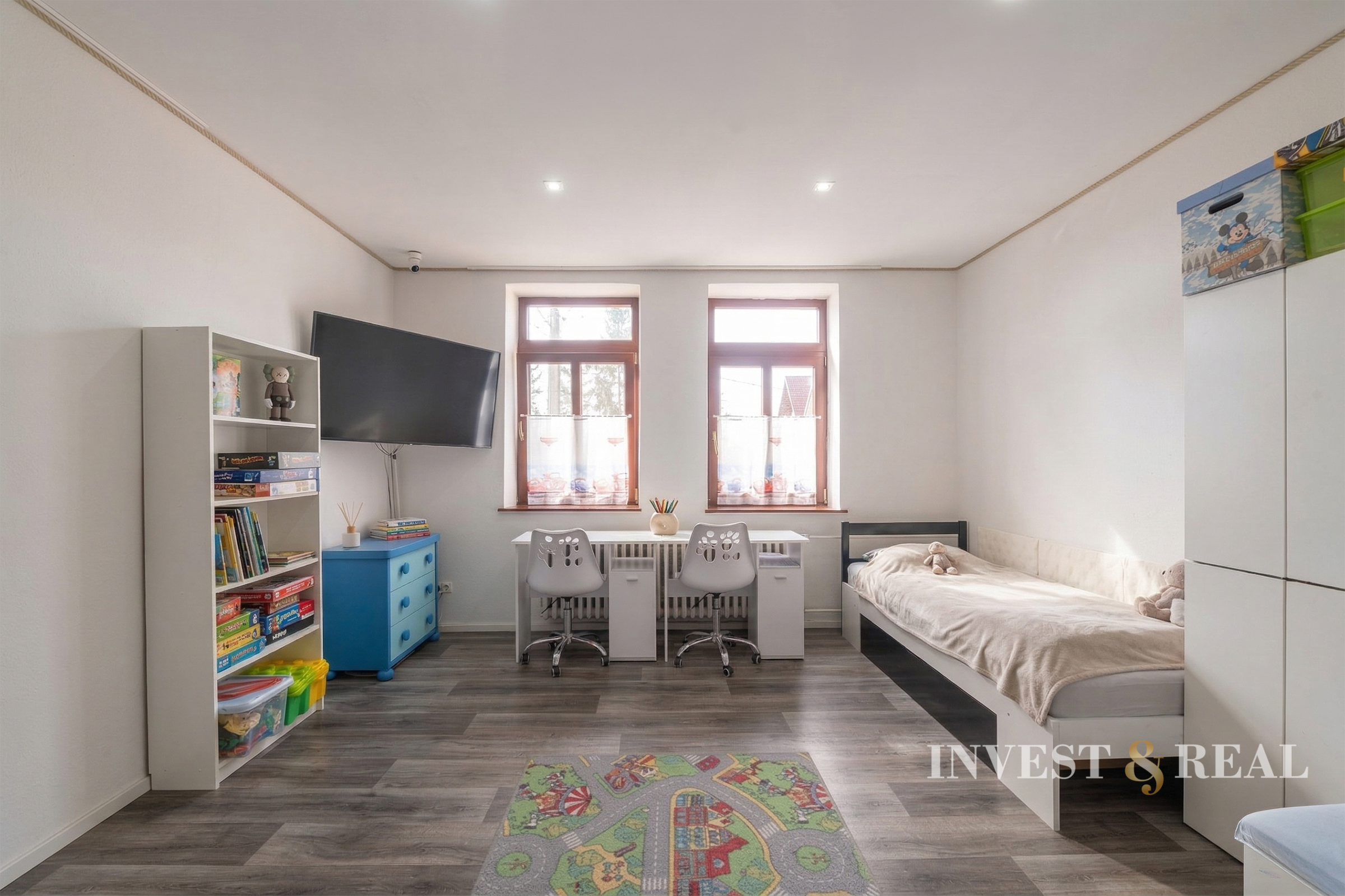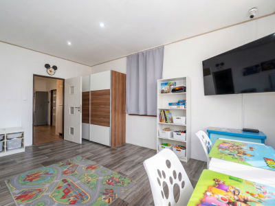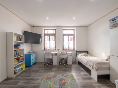 Dominantou rodinného domu je prvé poschodie, na ktorom sa nachádza veľkorysý 4 izbový byt po rekonštrukcii z roku 2021. Dispozícia bola navrhnutá s dôrazom na priestor, svetlo a funkčnosť. Južná orientácia zabezpečuje prirodzené presvetlenie počas celého dňa a vytvára príjemnú atmosféru domova.